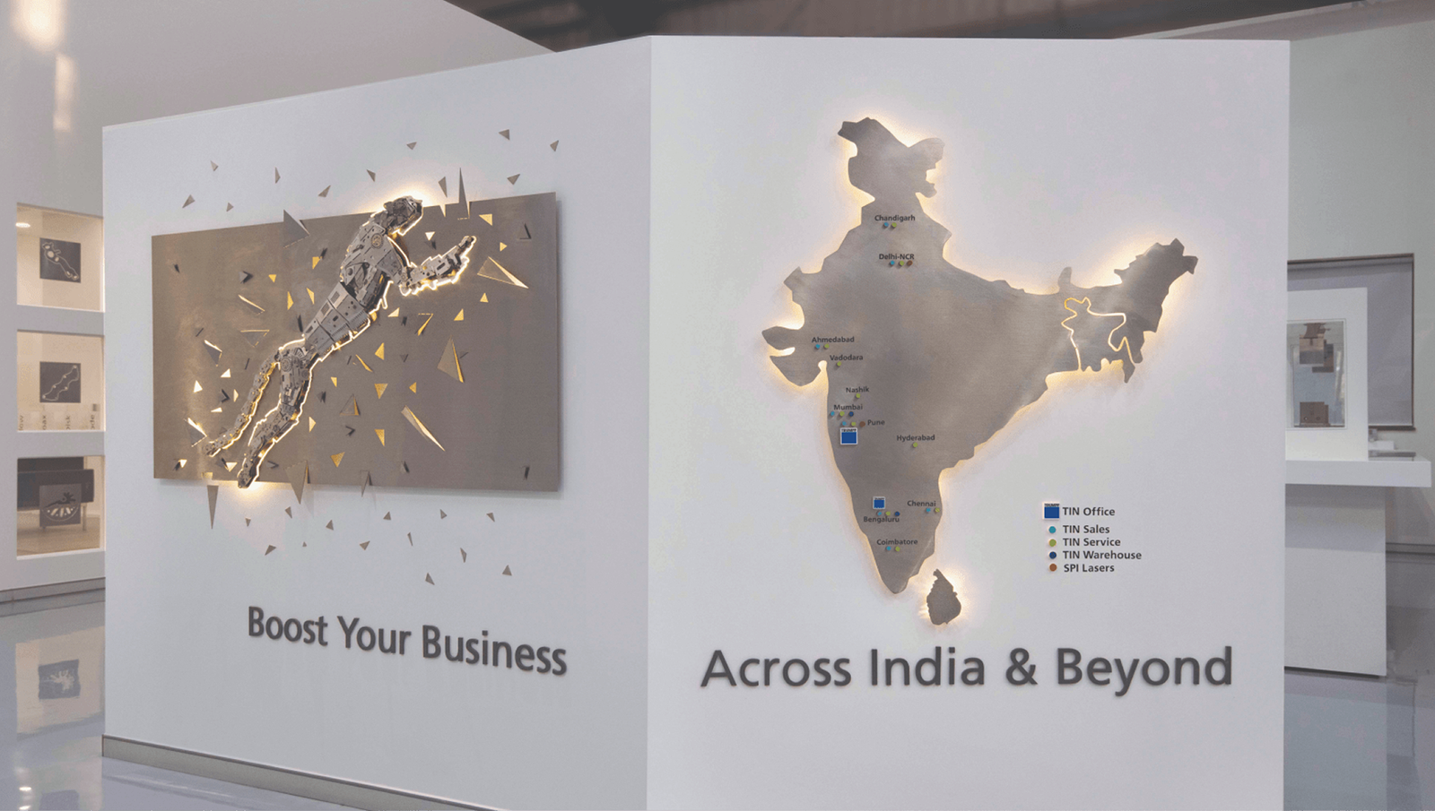 TRUMPF, one of the world’s leading laser technology providers, wanted to create an experience centre to showcase their technological strength. They commissioned Interics to strategise, design and execute their vision into a well-planned Spatial Experience. Interics created aesthetic and functional 2D and 3D installations using metal to highlight their products’ precision and speed. We created interactive, immersive and tactile experiences that narrate the brand story. The installations were designed such that they could be used in different spatial formats, such as events, trade show booths, etc. We used our wide network of vendors with different capabilities to create a stellar experience centre for the company.