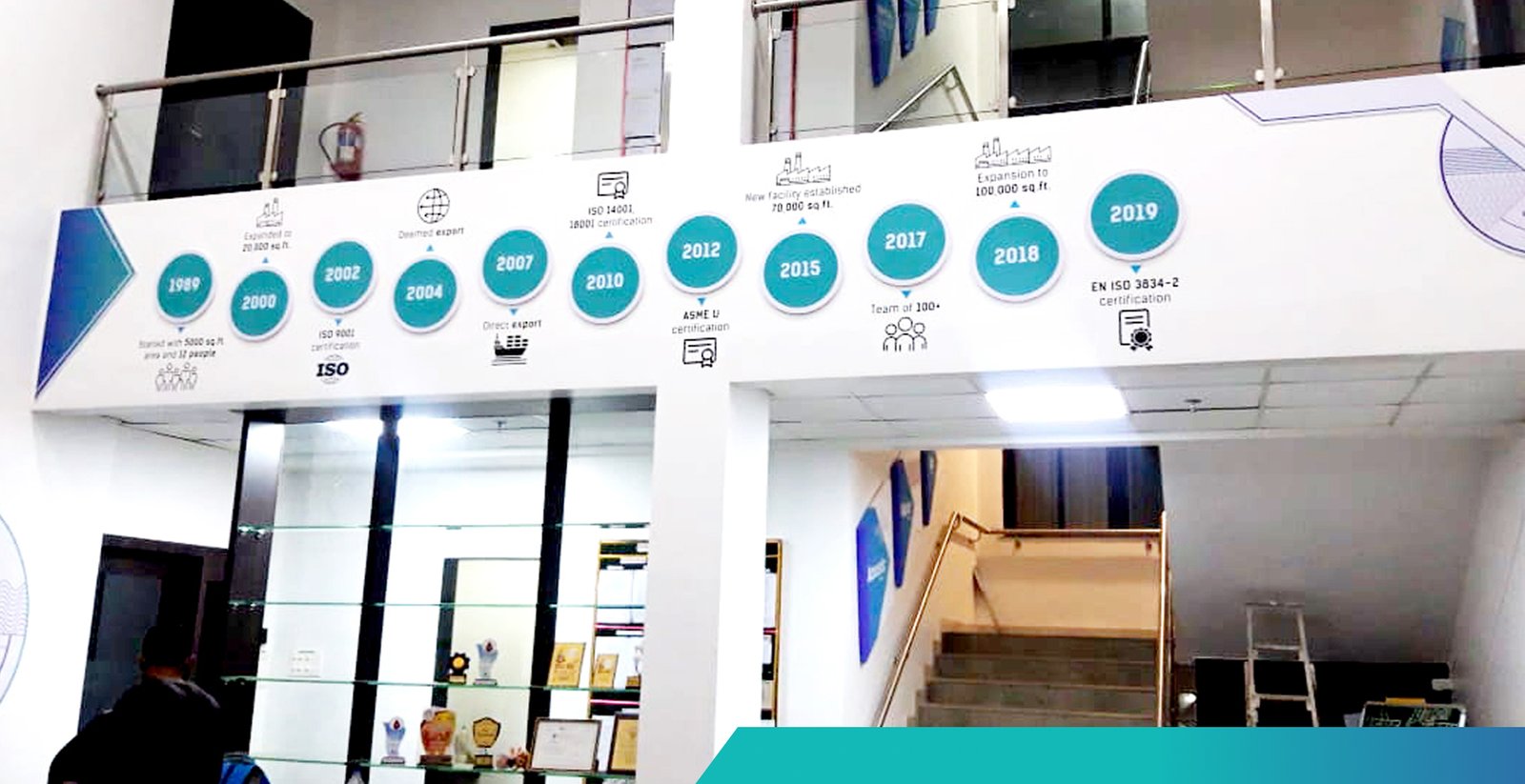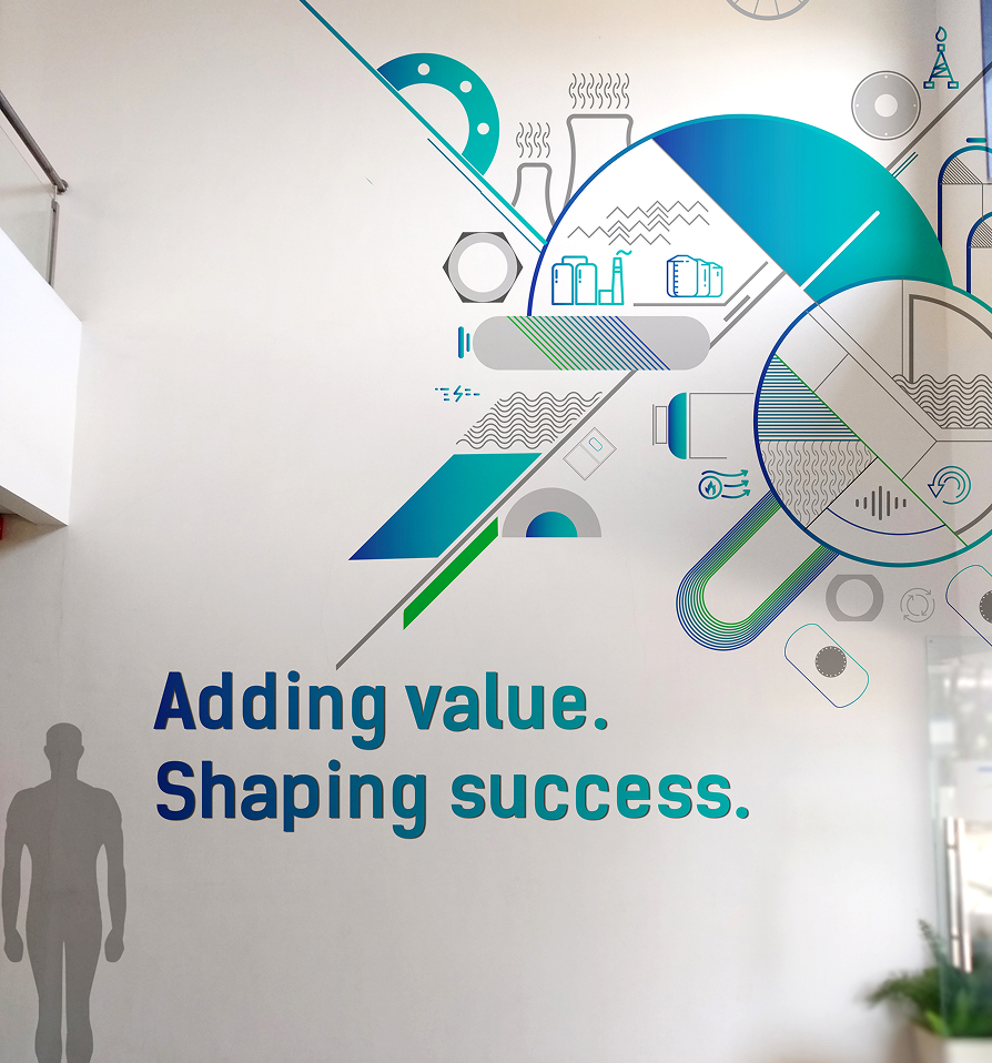 Walls and surfaces were used as communication tools to articulate the organisation’s industries, solutions, and engineering capabilities in a clear and engaging manner.