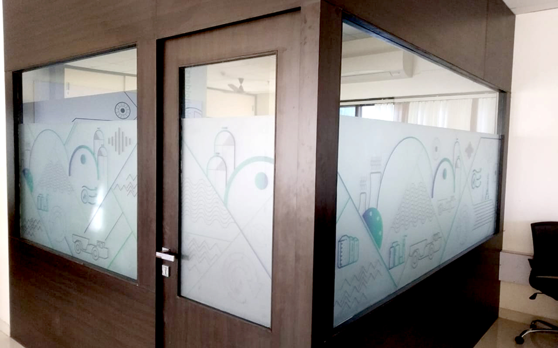 The office environment was thoughtfully branded by aligning spatial graphics, messaging, and visual cues with the organisation’s corporate profile and business goals. Every branded element was designed to reinforce clarity, purpose, and relevance, allowing the space to function as a visual representation of the organisation’s thinking and direction.